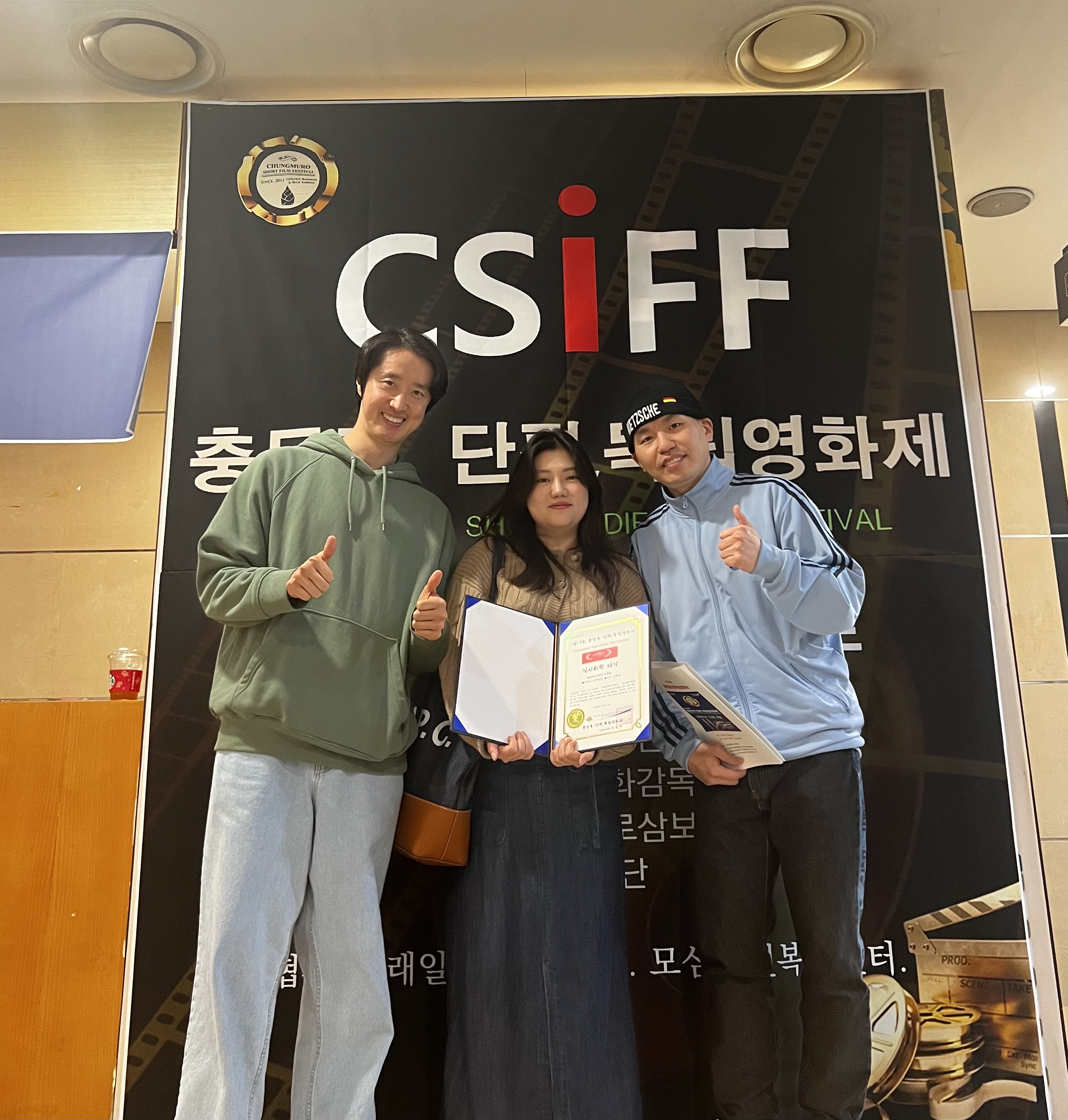 본사 퓌트가 제작, 기획하고 본사의 이한솔 대표가 감독, 각본을 맡은 <자전남녀>가 지난 제7회 충주단편영화제 대상에 이어, 제13회 충무로단편독립영화제에서 심사위원 대상을 수상했습니다. (좌) 주연배우 남정우, (중) 감독, 각본 이한솔, (우) 프로듀서 겸 공동각본 김봉민 공유하기 게시글 관리 주식회사 퓌트